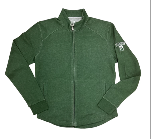 Johnnie-O Women's Green Tomi Full Zip is a stylish look that goes with almost anything. The full-front zip look is perfect for layering whether you run errands, make the morning commute, or just hang out with friends. Delbarton DWave logo on left sleeve.