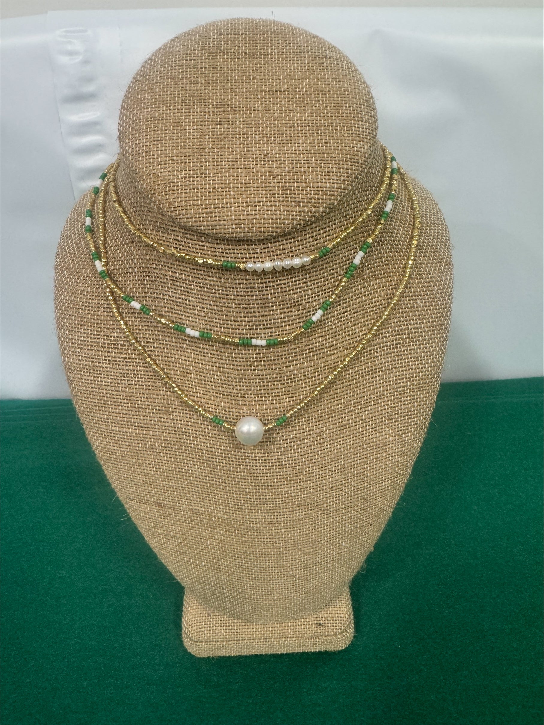 Necklace - Summer Love Designs Mini Pearls Choker - Gold/Pearl/Green