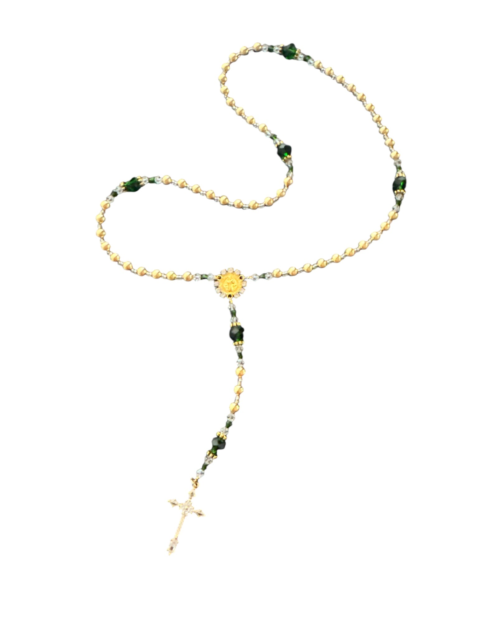 Rosary - The Rosary Is The Way Small Gold & Green Crystal Bead Rosary - Gold/Green